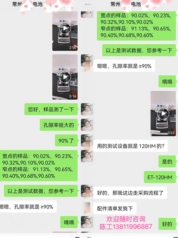 常州一電池廠的用戶打電話來咨詢我們的孔隙率測試儀,根據(jù)它要測試的產(chǎn)品質(zhì)量很輕,鋰電池隔膜材料,推薦了ET-120HM多功能型密度和孔隙率測試儀。