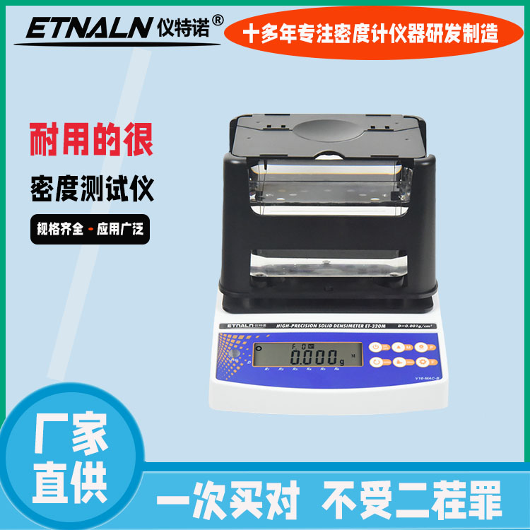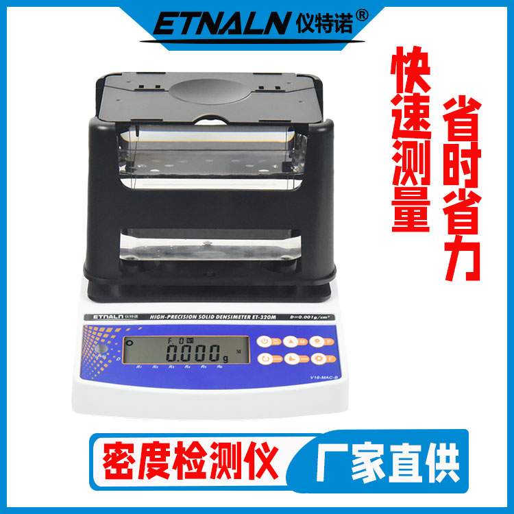 儀特諾ET-320M型多功能固體密度測試儀也叫做多孔供材料密度檢測儀/孔隙率測試儀/含油率測試儀/磨耗量測試儀,依據ASTM B311、B328、GB/T5163、JIS Z2505、JIS Z2506、MPIF Standard42、MPIF Standard45…等標準規范,采用高精度稱重傳感器,人性化的測量設計;可瞬間測得密度值,具有飽和測量法、表面覆蓋防水處理法、高粘稠介質液體法等多種測量方法;測量精度高,數據可靠,等特點。