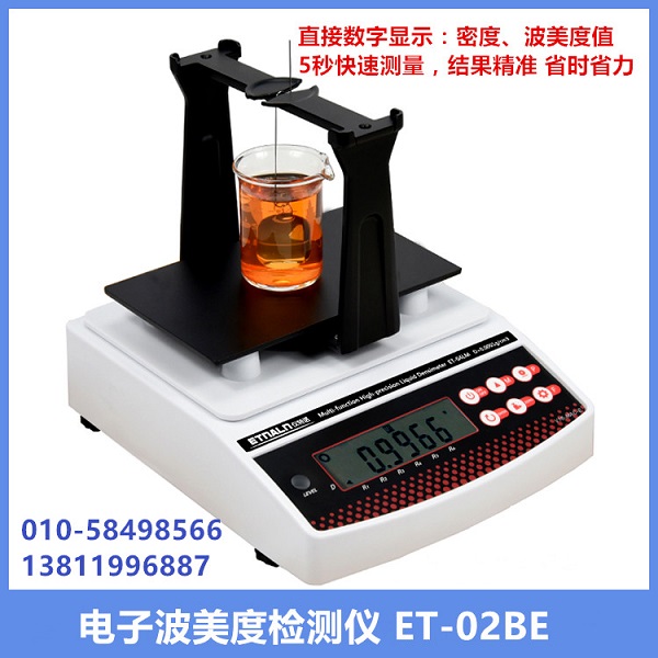 ET-01BE,ET-02BE產品是根據阿基米德原理,自動顯示波美度Bé、密度值D ,測量精度高、快速、簡單;密度>1,<1 皆可測量。